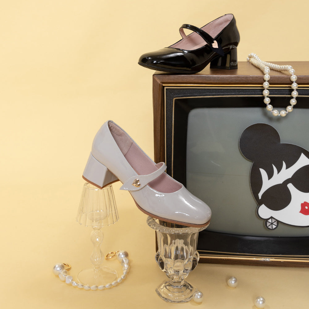【FAIR LADY聯名】復古金屬愛心釦瑪莉珍中跟鞋(6G2915)