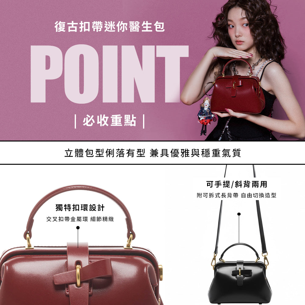 • 復古醫生包造型:經典結構搭配柔和曲線,展現優雅與俐落兼具的風格